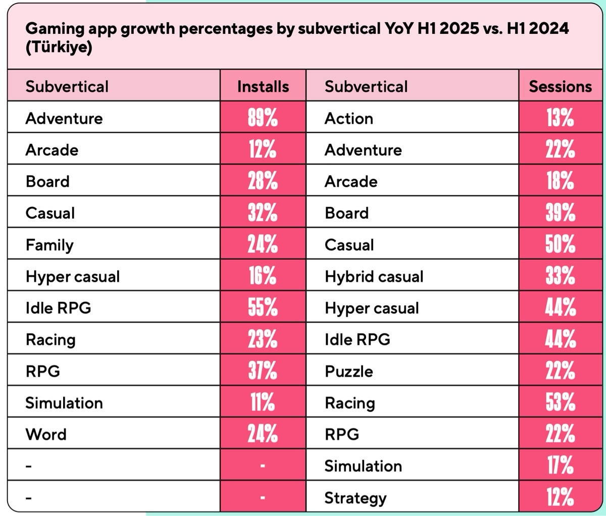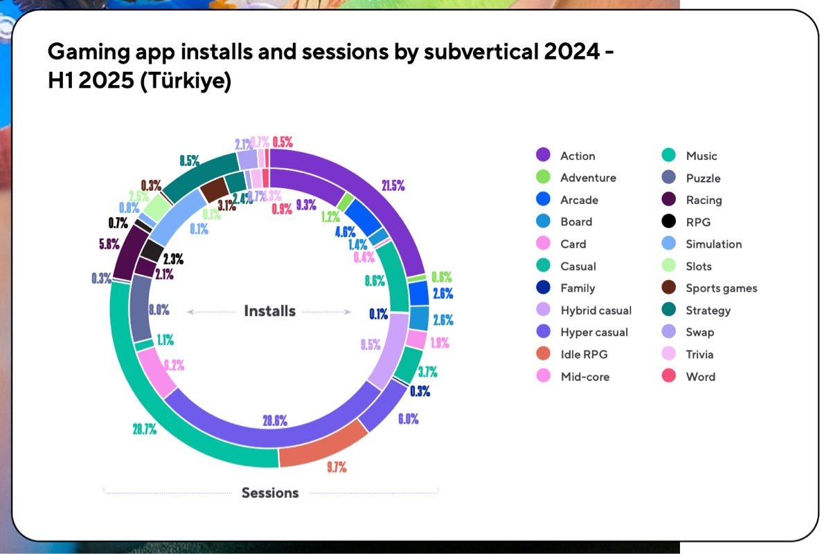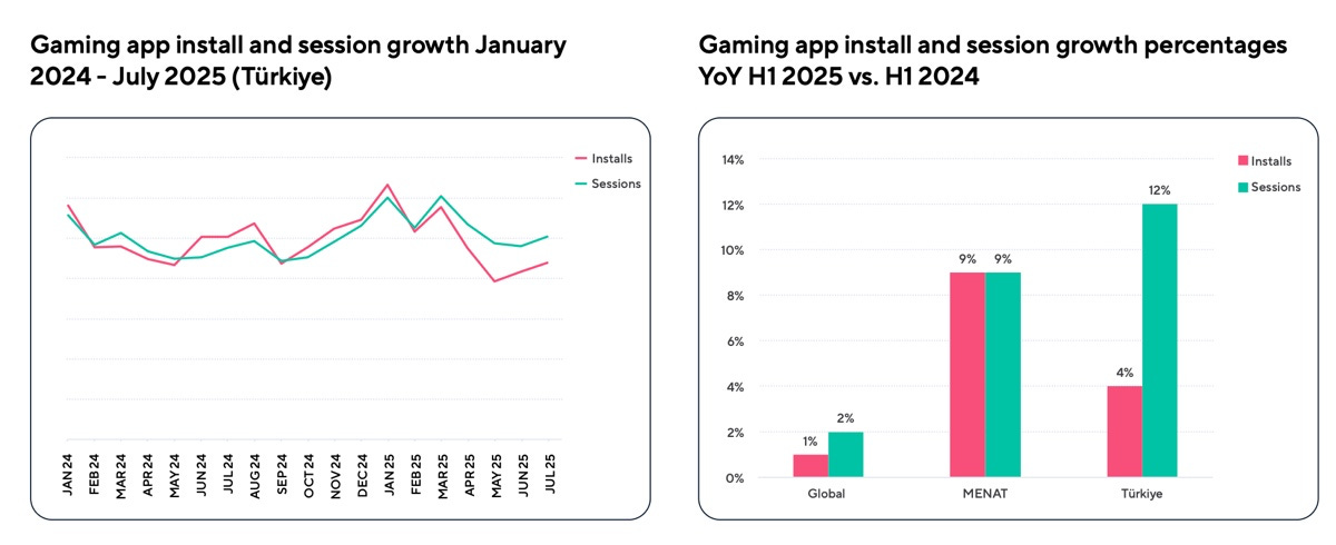 Mobile game installs in Turkey grew 12% YoY in 2024, while sessions increased 8%.