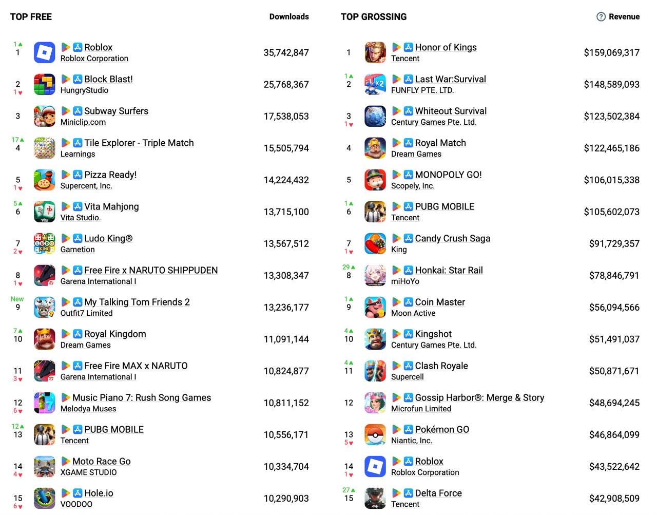 AppMagic: Top Mobile Games by Revenue and Downloads in July 2025