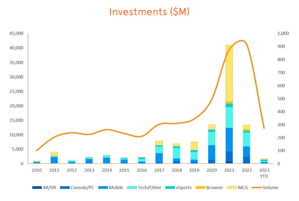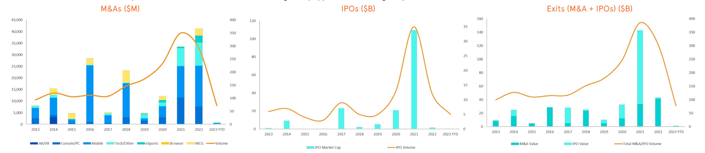 Only one gaming IPO of $10 million happened in the second quarter of 2023. In the first quarter, there were 4, totaling $450 million.