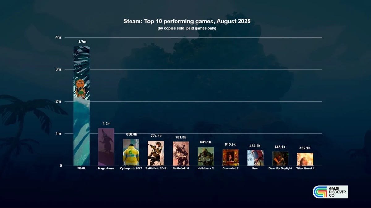 Peak continues to sell amazingly well. In August alone, it sold 3.7M copies. Mage Arena is also showing great results with 1.2M copies sold.