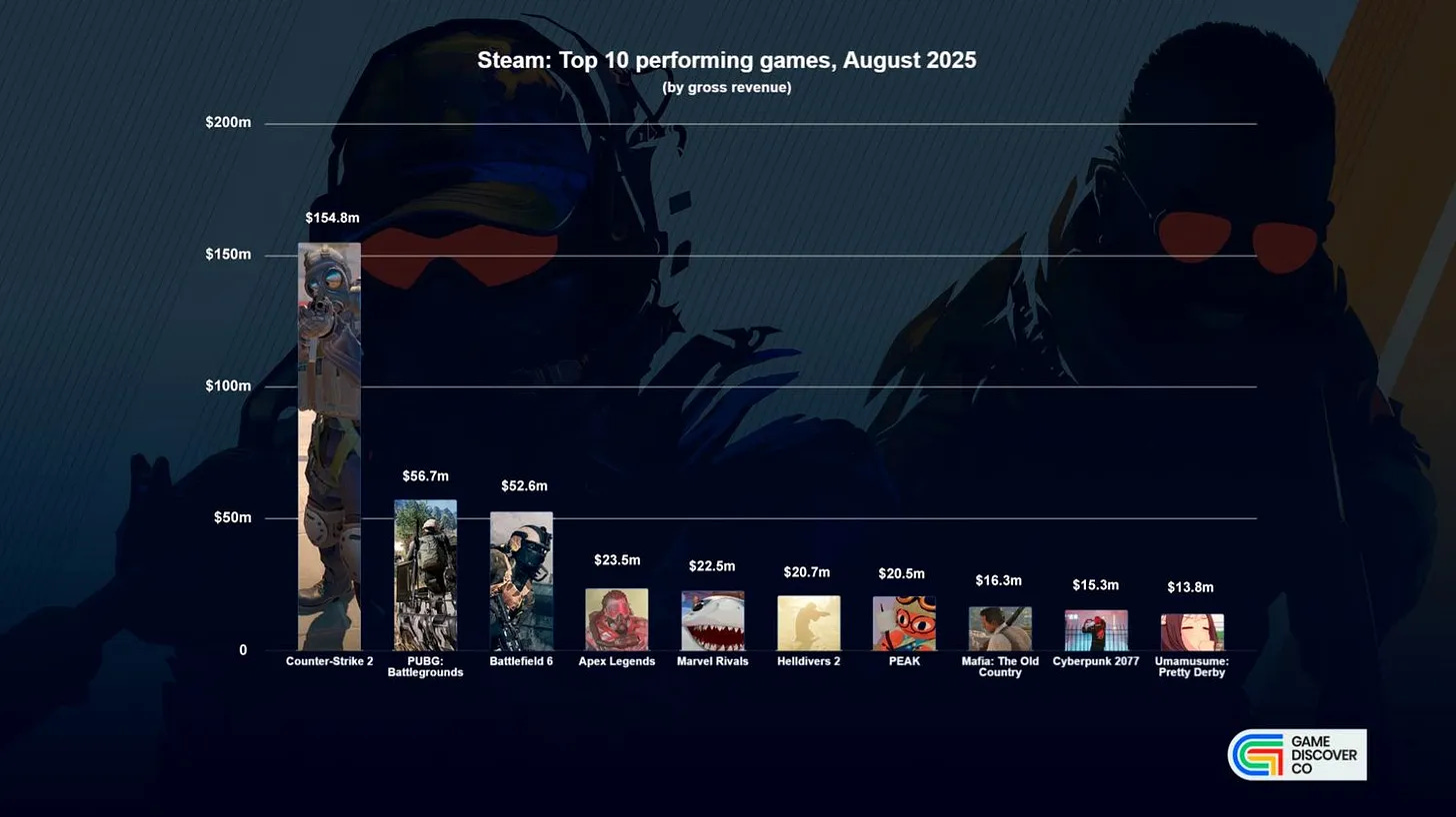 Counter-Strike 2 ($154.8M revenue) was the absolute leader in August (and not only August).