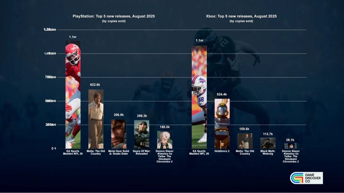 EA’s Madden NFL 26 sold 1.1M copies on each console—the biggest August release. 95% of all sales came from the U.S.