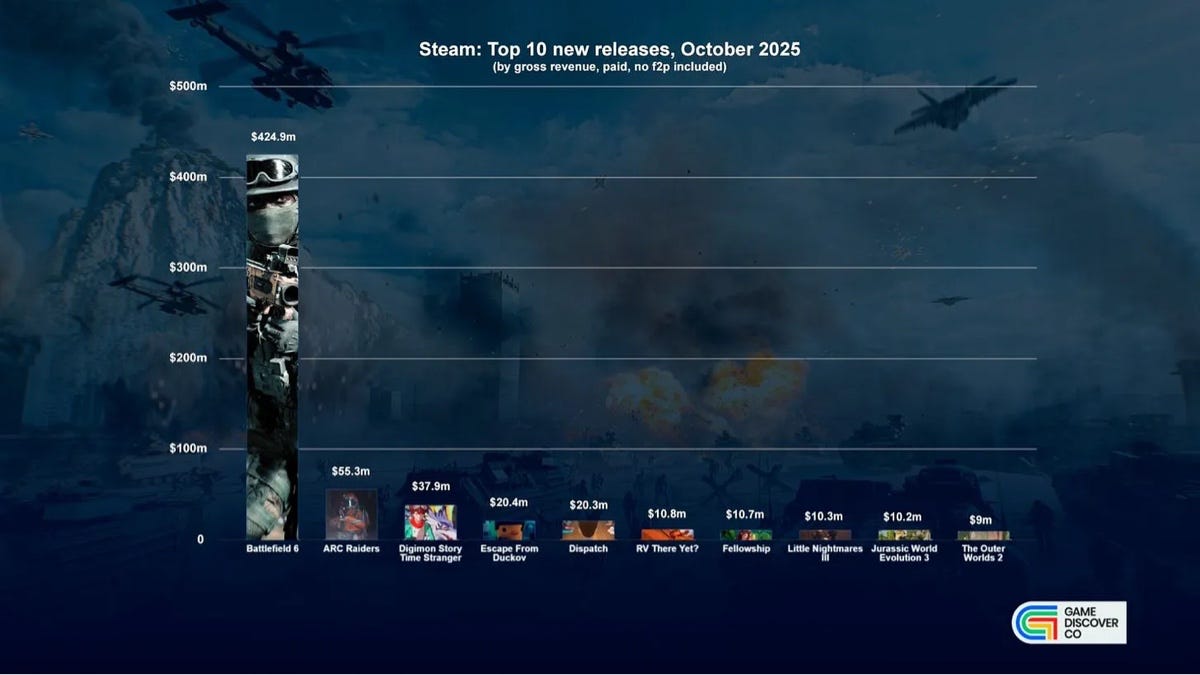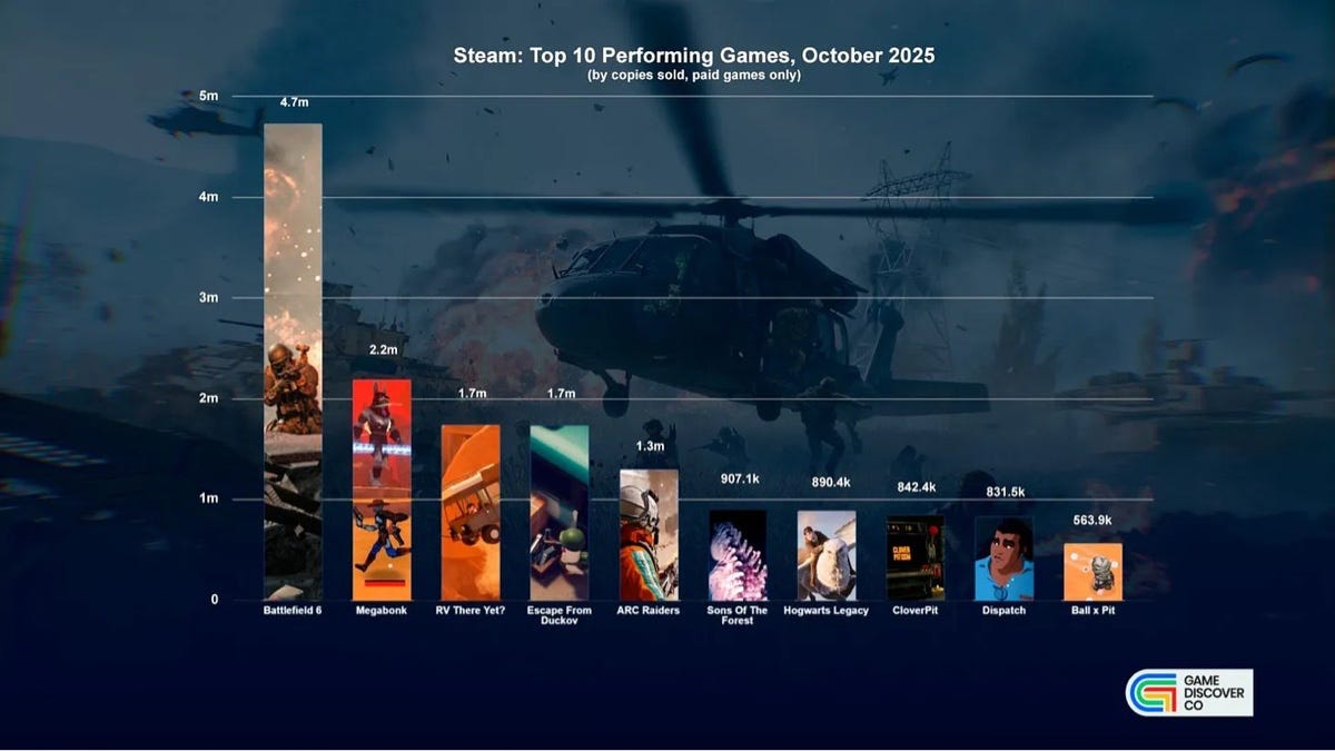 Battlefield 6 was the biggest hit of the month, selling over 7 million copies on Steam by the end of October (including 2.5 million pre-orders).