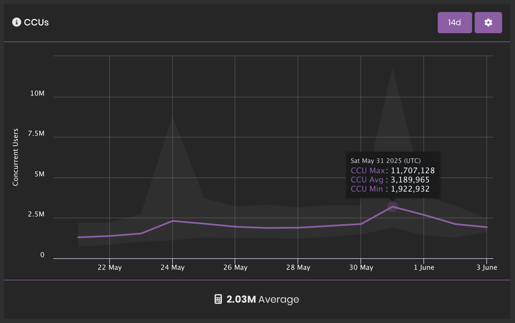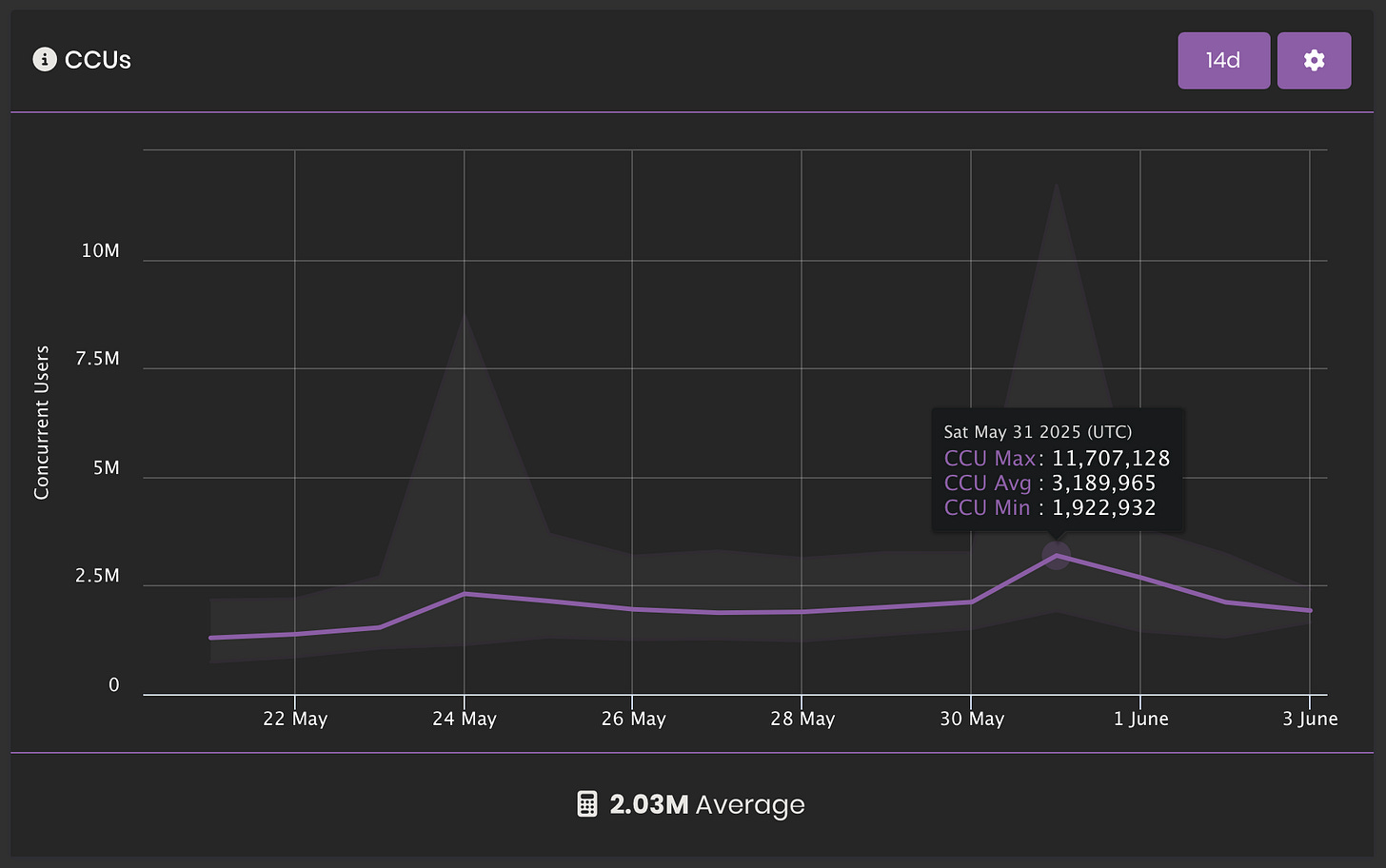 The CCU of the new Roblox hit Grow a Garden reached 11.7 million people on May 31. For comparison, on that day, there were fewer people in all games on Steam.