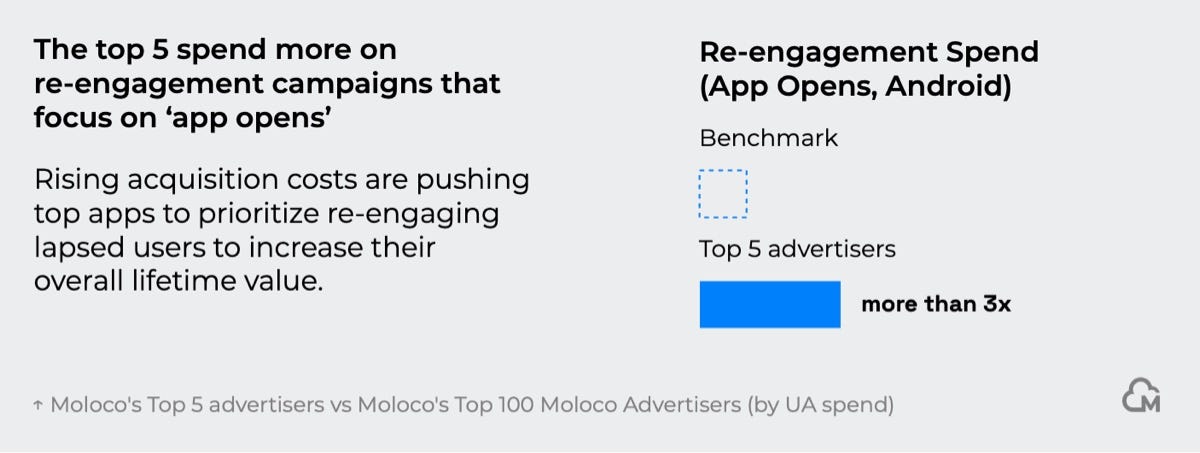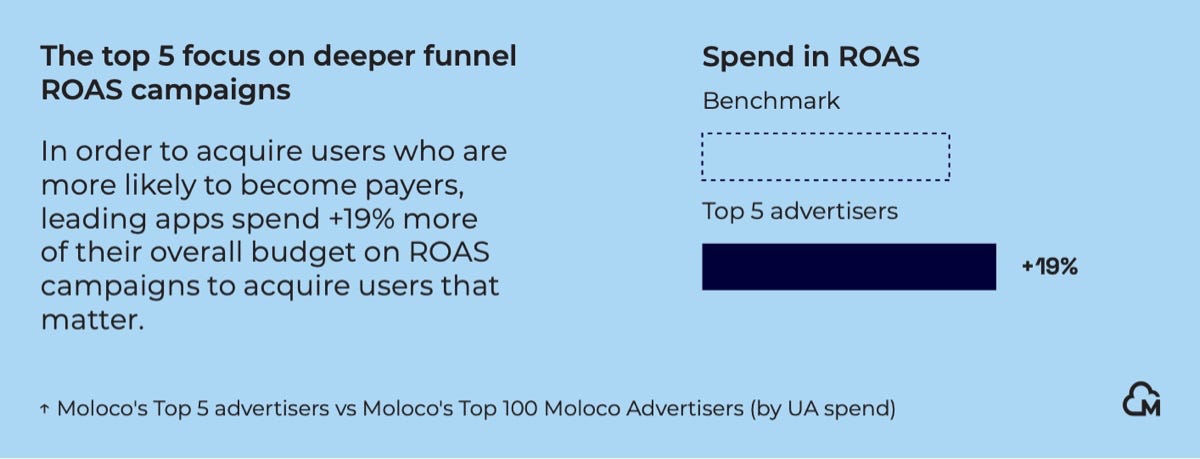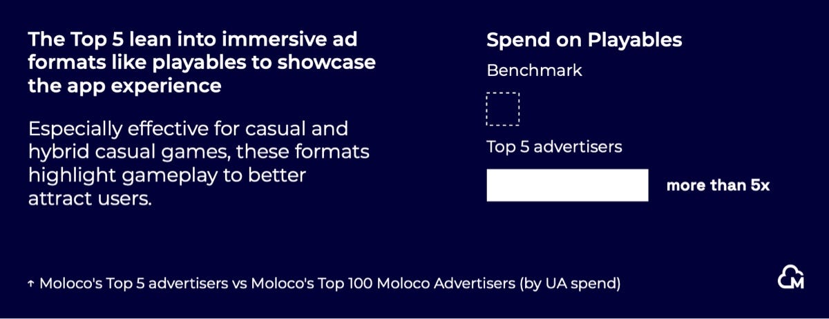 Moloco data is based on the top-100 gaming advertisers on Moloco. Companies not using the channel are excluded.