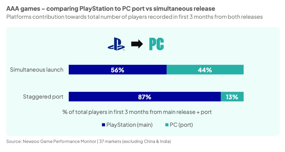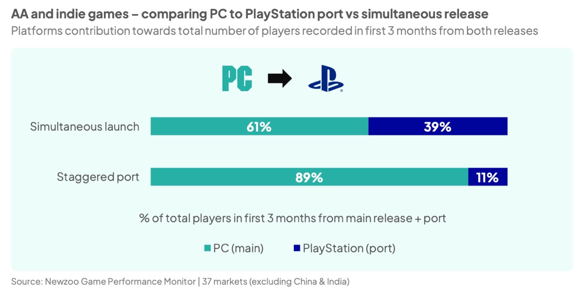 Newzoo compared simultaneous multi-platform launches with staggered ones (indie & AA in this case).
