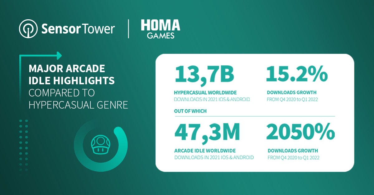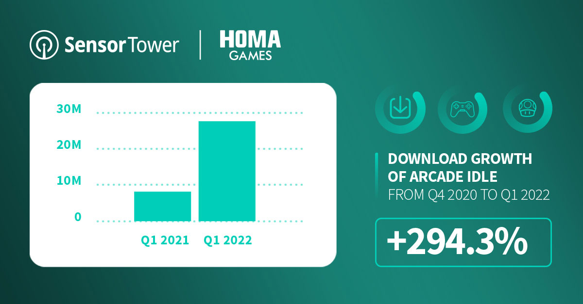 Sensor Tower & Homa Games: Arcade Idle Games downloads increased by 2050% in a year