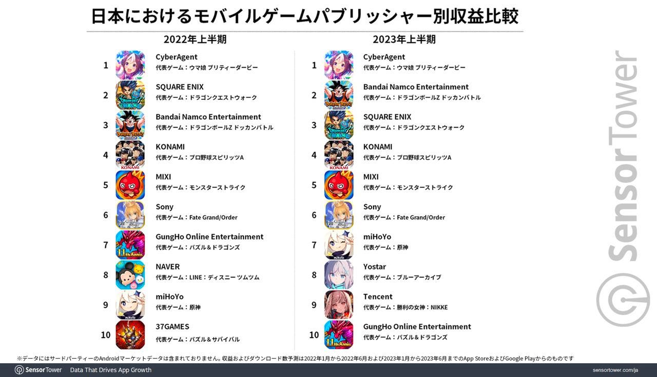 CyberAgent, Bandai Namco Entertainment, and Square Enix are leaders in the Japanese market by revenue.