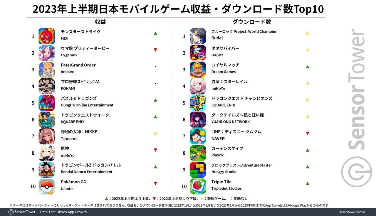 Monster Strike from MIXI is the leader in H1 2023 by revenue. The game earned $350M during this period.