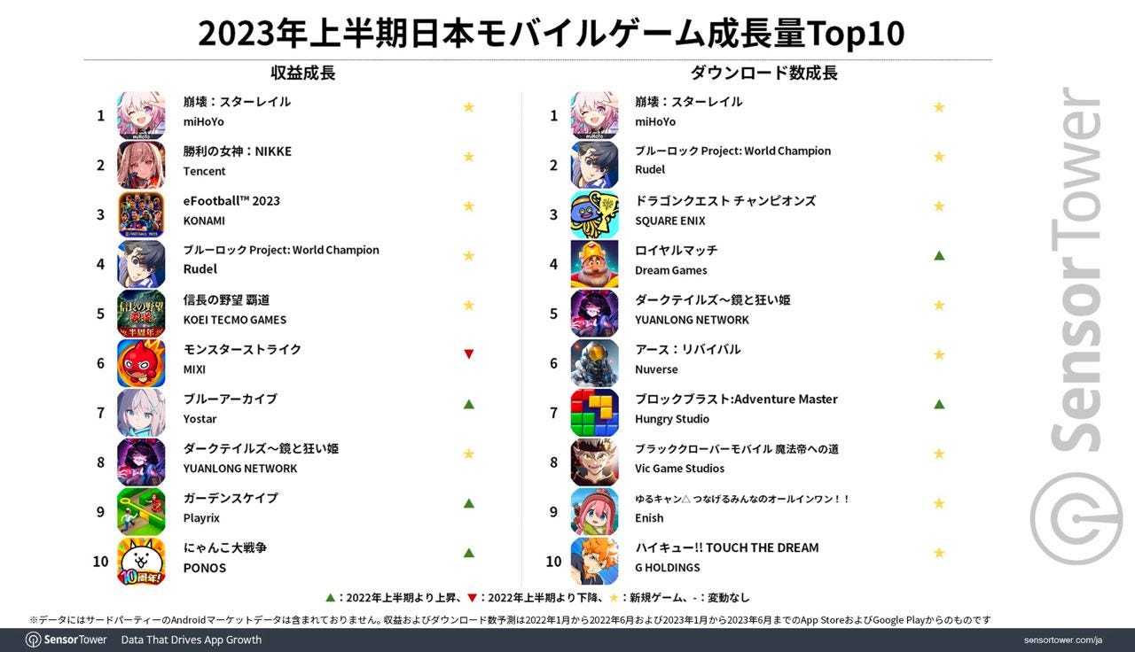 Tencent stepped to the top-10 rating in H1 2023; miHoYo went up by two positions thanks to the great release of Honkai: Star Rail.