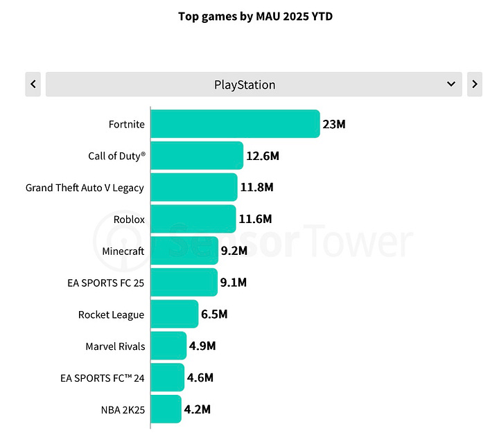 EA Sports FC 25 was the most popular PC/console title in the first 7+ months of 2025.