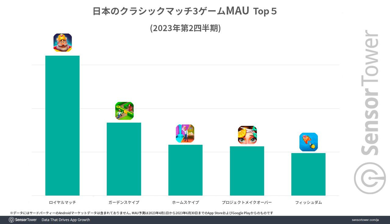 Royal Match is the most successful puzzle game in Japan, surpassing Gardenscapes, Homescapes, and other hits by several times. In terms of Monthly Active Users (MAU), the game outperforms Gardenscapes by two times.