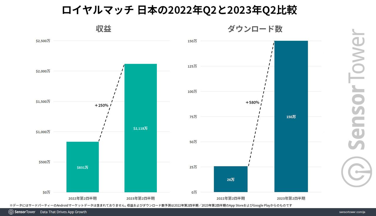 In Japan, Royal Match experienced sharp growth in the second quarter of 2023 in terms of both downloads (+580%) and revenue (+250%).