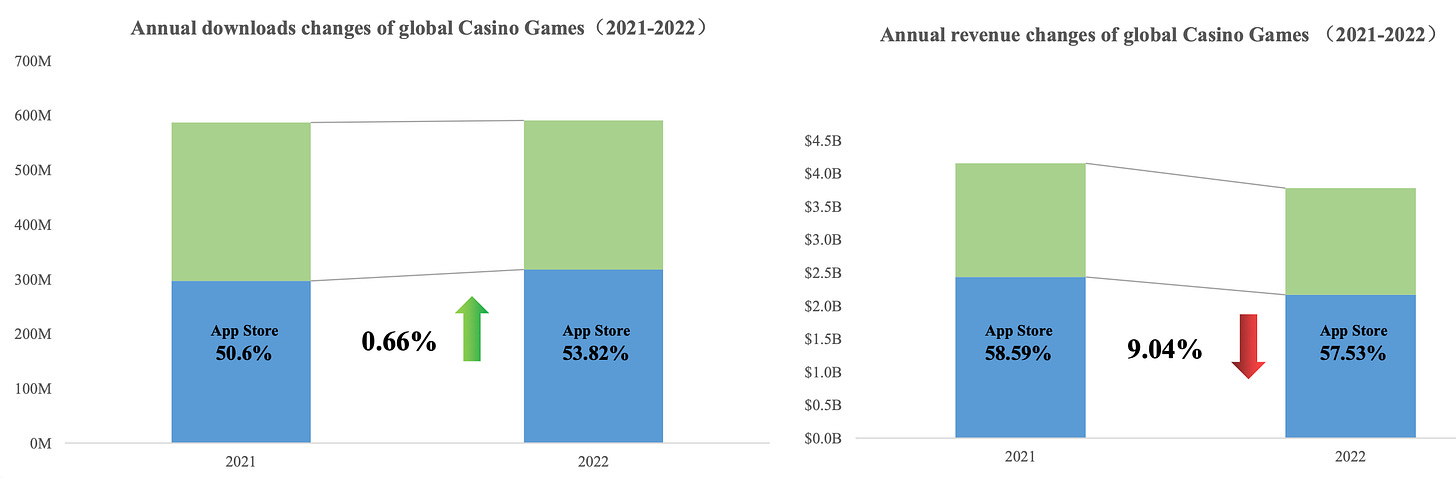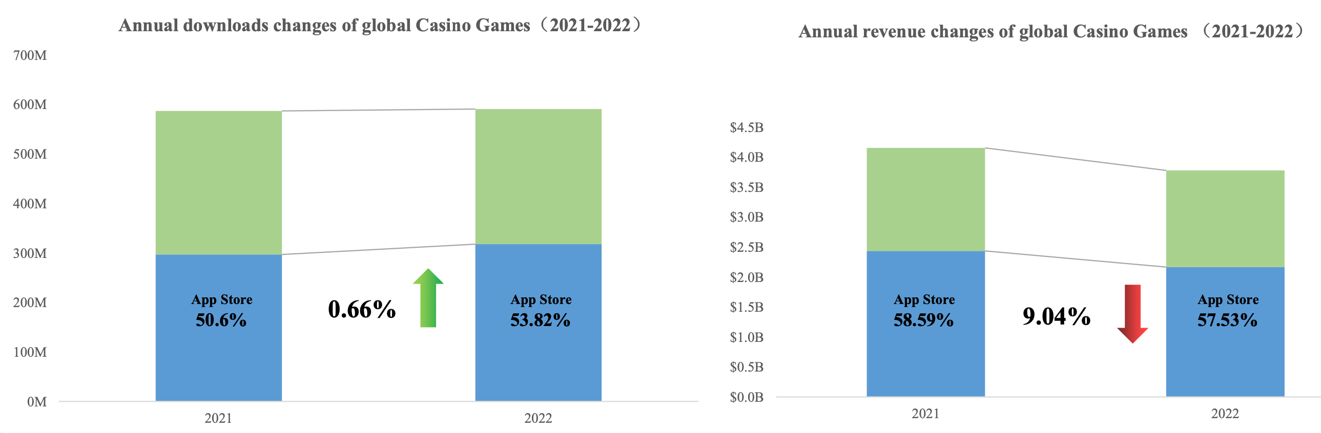Casino - downloads improved by 0.66% while revenue dropped by 9.04%.