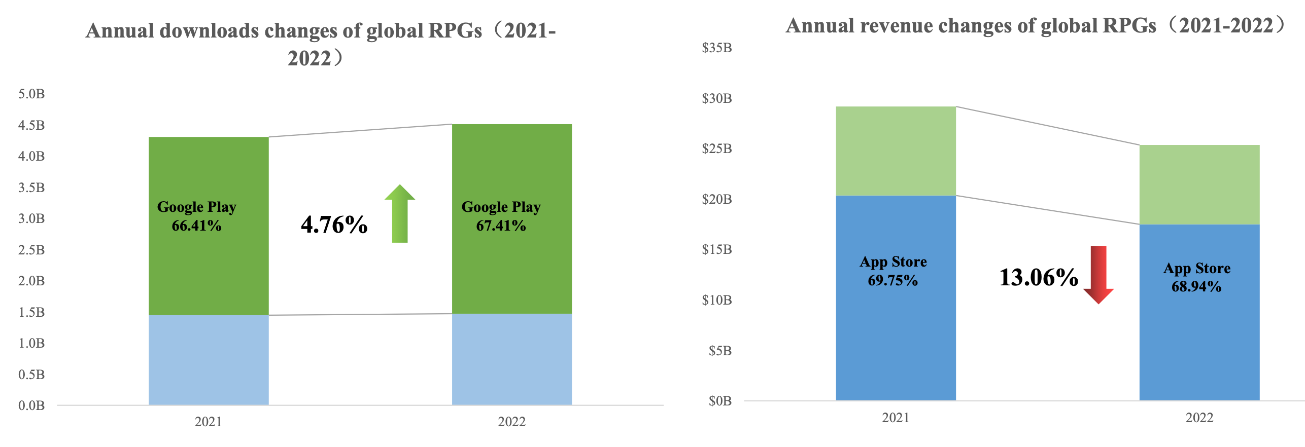 RPG - downloads increased by 4.76%, and revenue dropped by 13.06%.