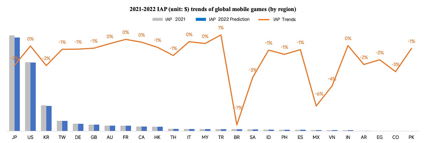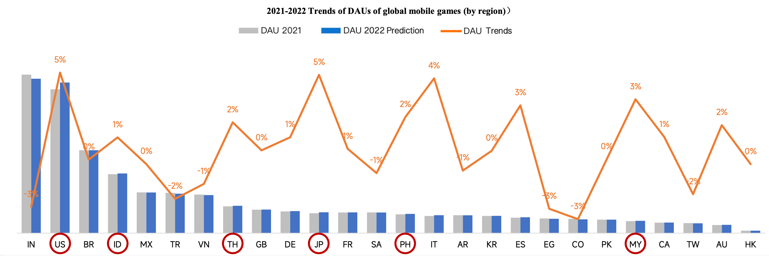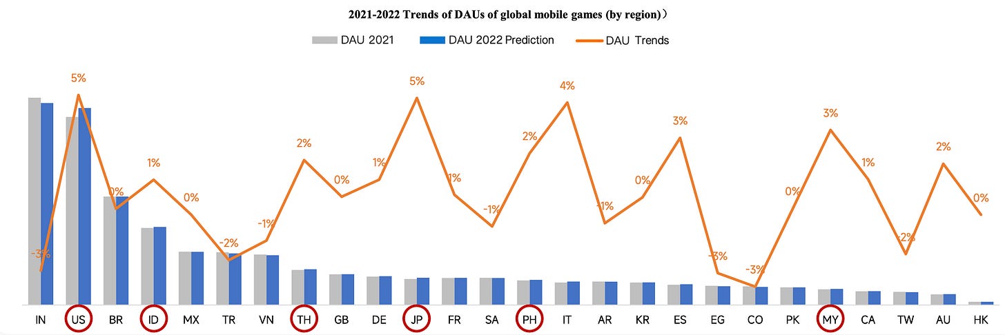 Southeast Asia countries showed the best result in DAU growth. The US is second (+5%), and Japan showed the same increase.