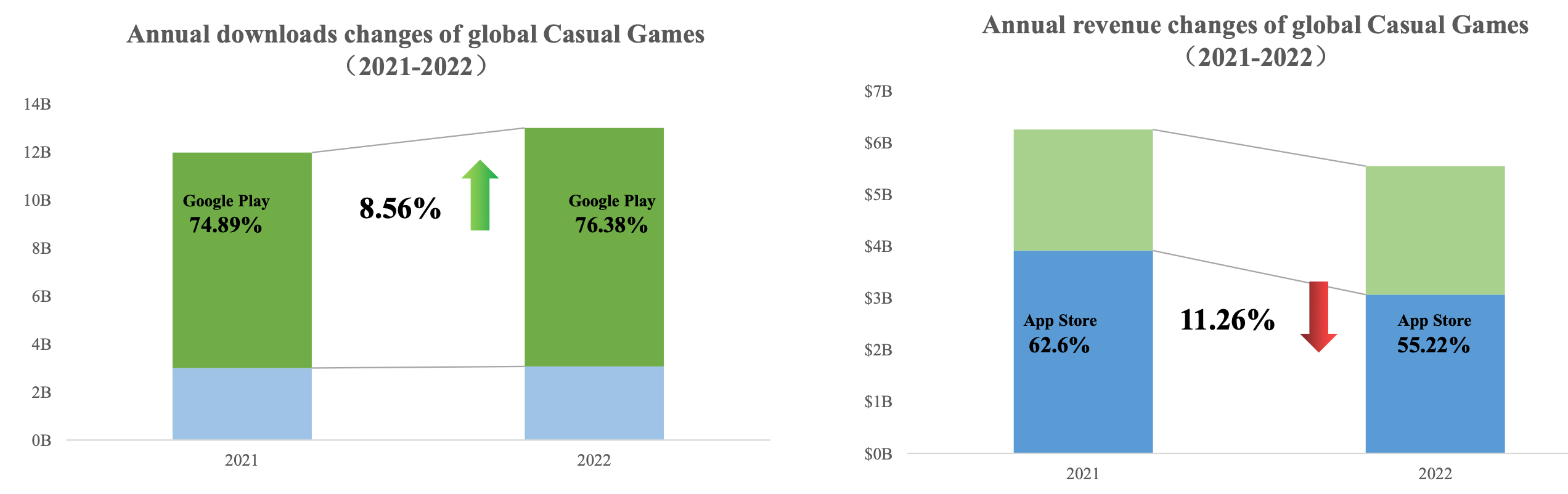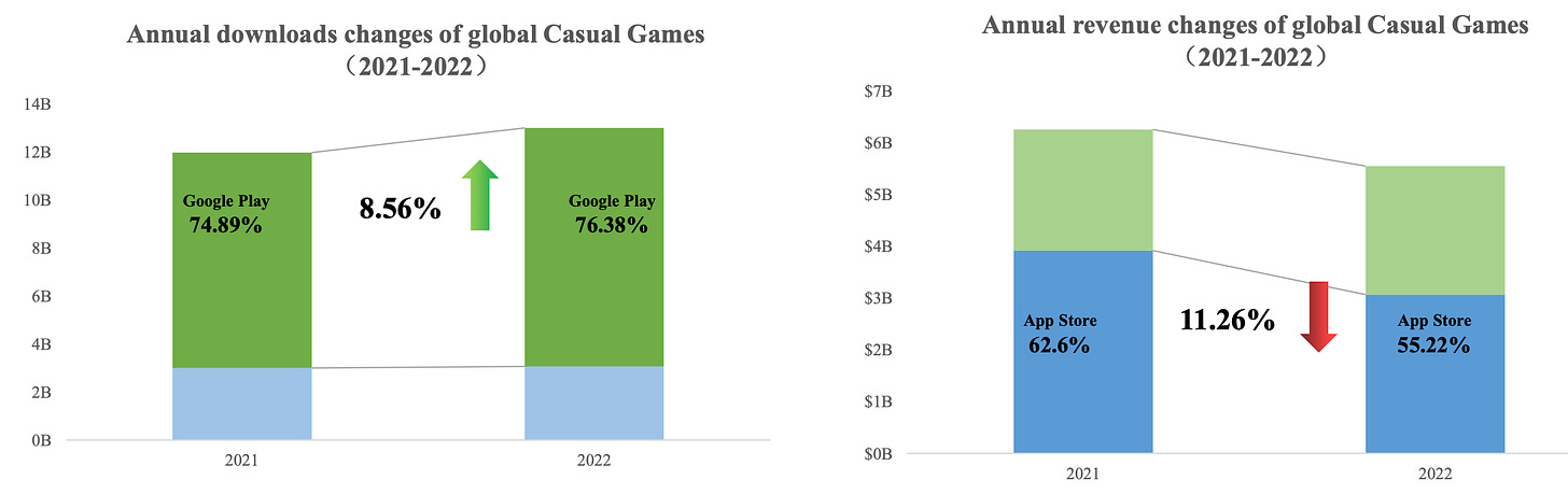 Casual games - downloads climbed up by 8.56%, and revenue shrank by 11.26%.