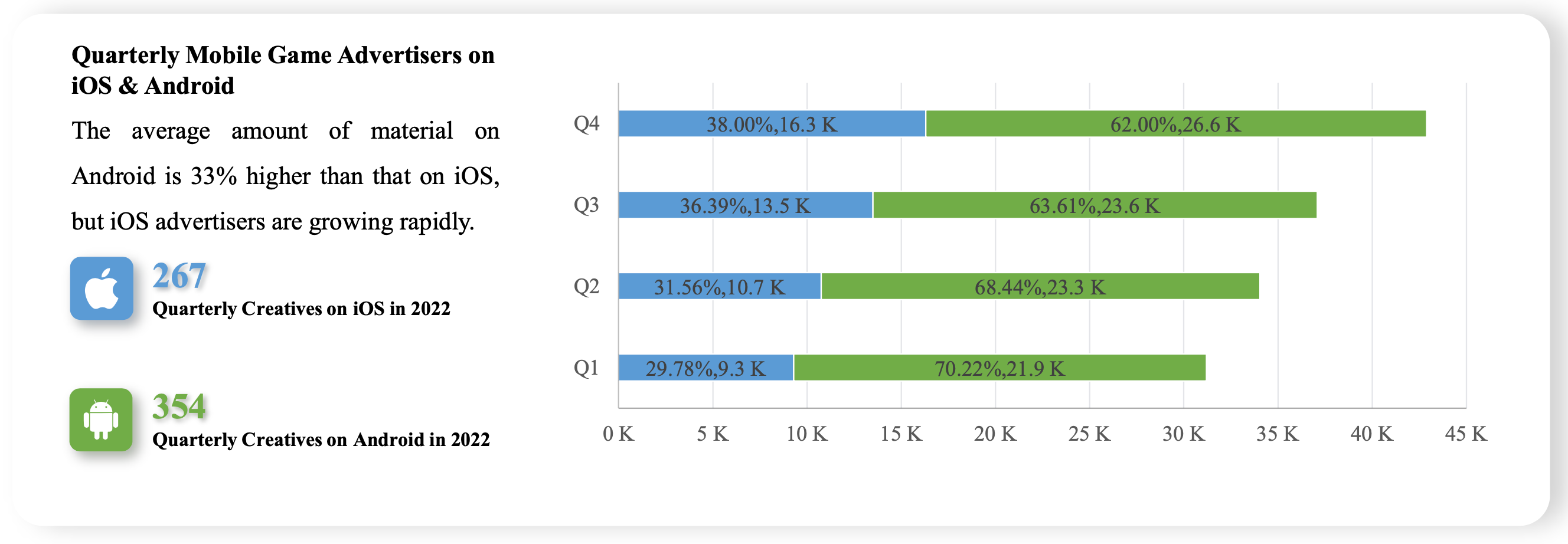 The share of advertisers on iOS was increasing during the year. Its share increased from 29.78% in Q1 2022 to 38% in Q4 2022.