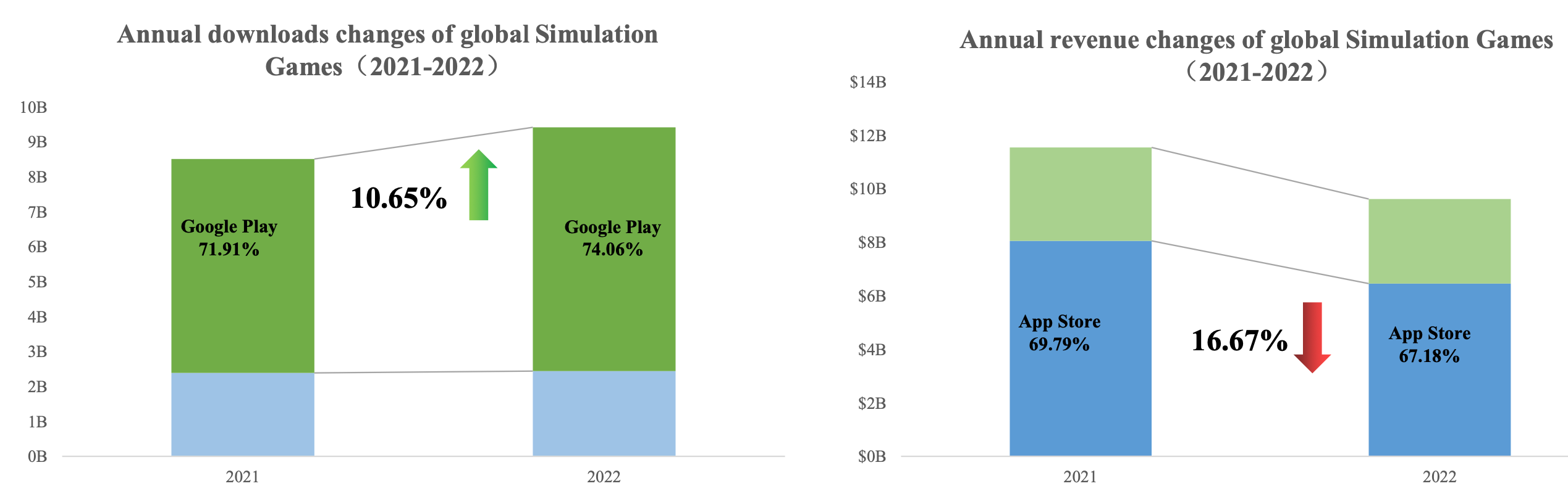 Simulation games - downloads grew by 10.65%, and revenue reduced by 16.67%.