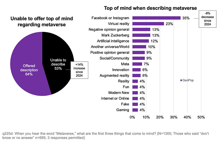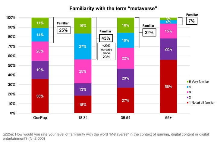 Only a quarter of Americans are familiar with the concept of the metaverse. When people hear about it, they tend to think of Facebook/Instagram or virtual reality.