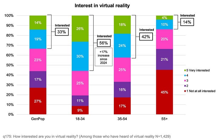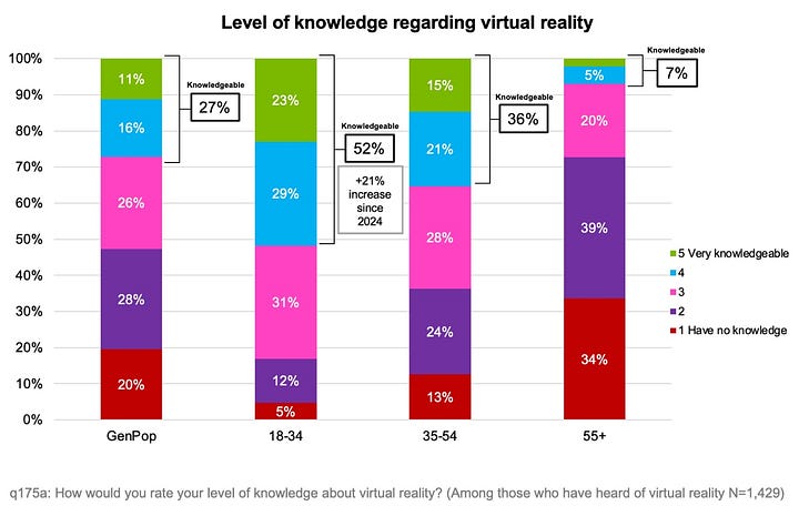 Slightly more people understand virtual reality - 27% of all respondents. A third finds it interesting.