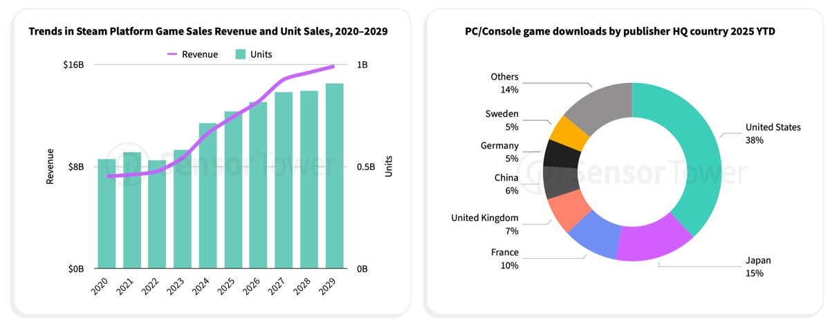 By the end of 2025, Steam revenue is projected to grow by 12% (to $11.9 billion), with units sold to grow by 8% (to 770 million copies). By 2029, these figures should reach $16 billion and 900 million, respectively.
