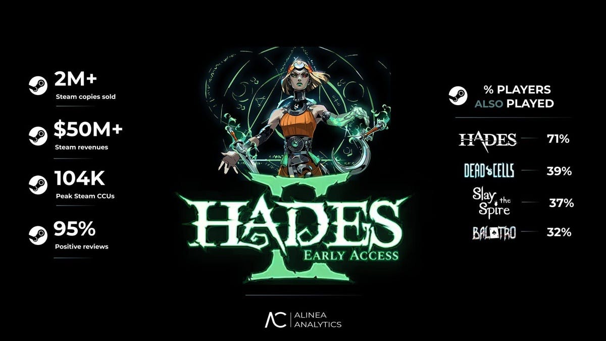 Hades II successfully launched into full release - right after the launch, the game reached a CCU of 112.9 thousand. Alinea Analytics reports that the Steam version 1.0 has sold over 2 million copies.