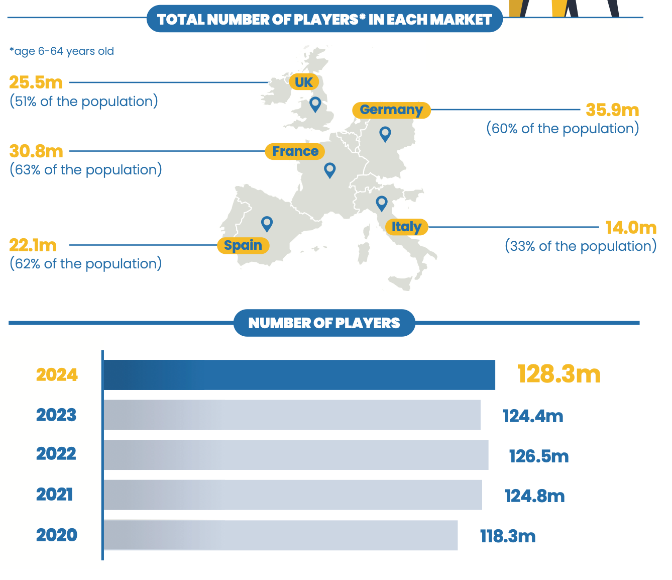 The total number of players in Europe reached 128.3 million. This is a new record and the largest figure in the last 5 years.