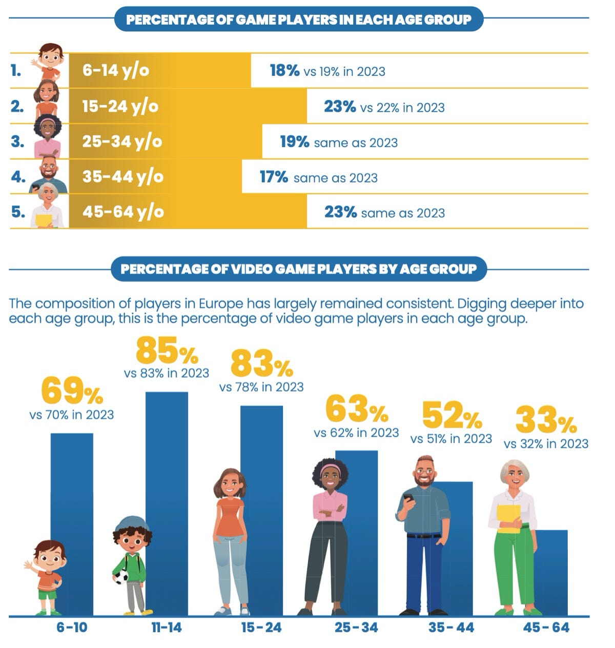 54% of Europeans aged 6 to 64 play games. 75% of people in Europe over 18 play games.