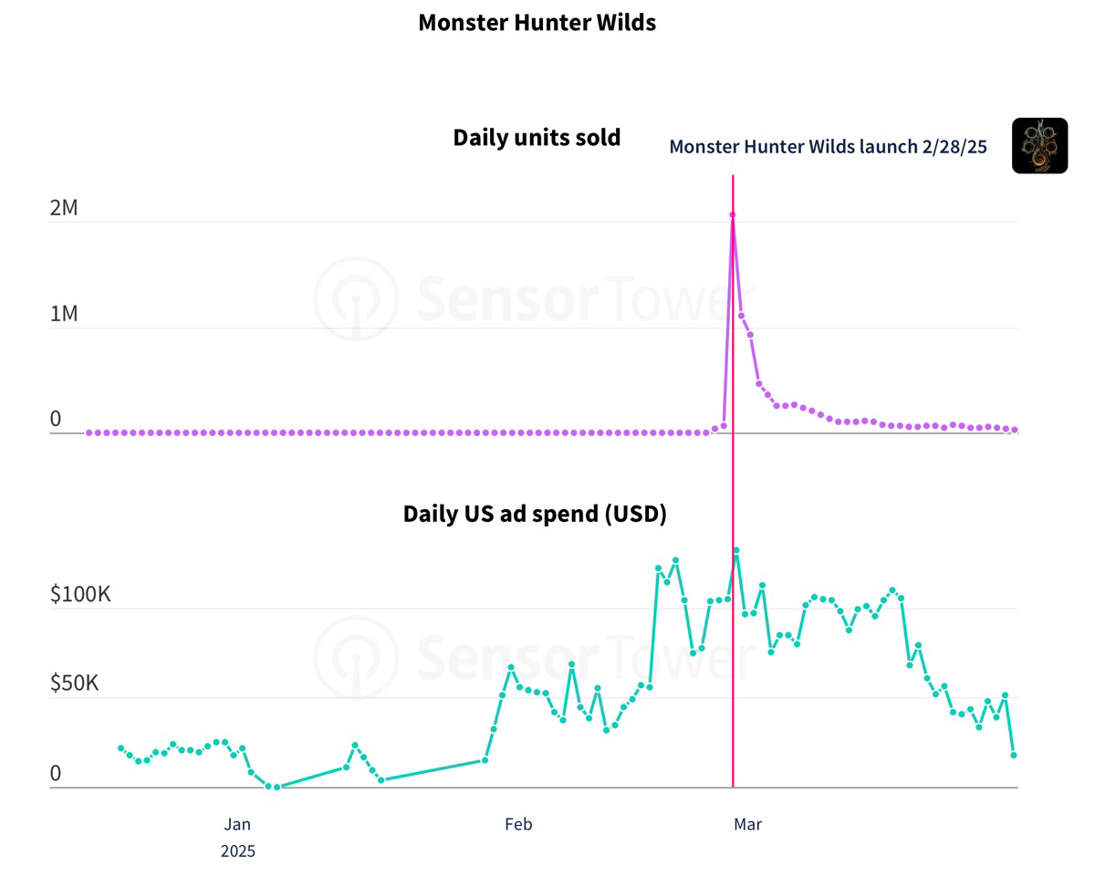 In marketing, Monster Hunter Wilds ramped up US advertising about a month before launch, shifting from TikTok/Reddit pre-launch to OTT post-launch, with ads focused on epic gameplay showcases.