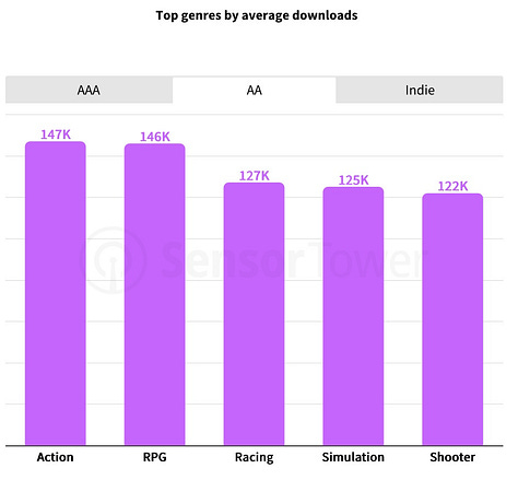 In the AA segment, action and RPGs are the strongest (Clair Obscur: Expedition 33, Kingdom Come: Deliverance II).