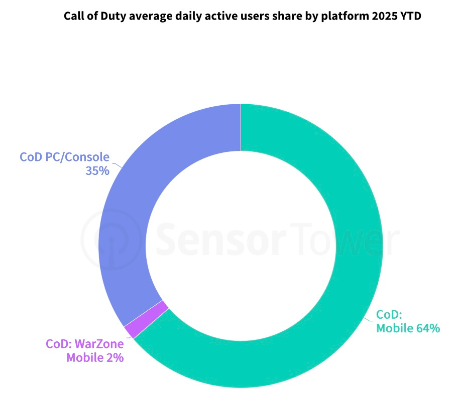 Sensor Tower notes that Call of Duty has more DAU on mobile than on PC/console - 64–65% vs 35%. A reminder of how crucial good mobile adaptation is for franchises.