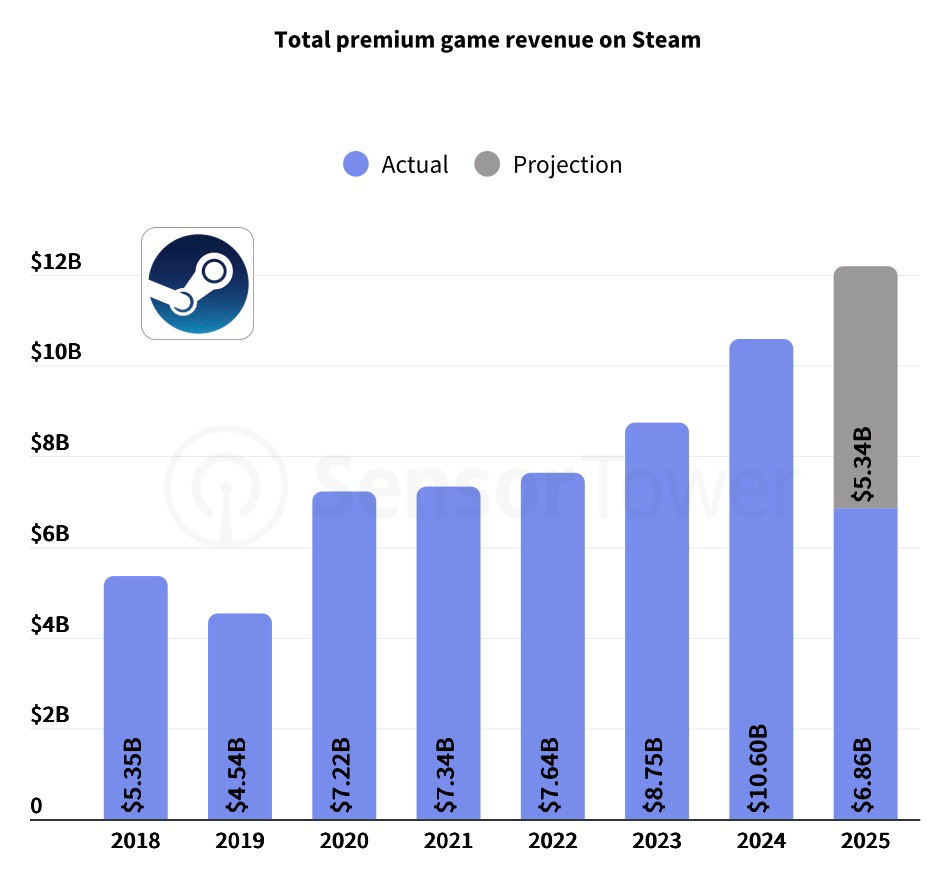 Paid games on Steam in 2025 are on track to hit a record. Already, sales are 15% higher than last year (also record-high). By the end of the year, paid games on Steam are expected to generate more than $12 billion.
